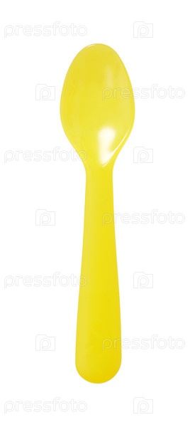 Желтая пластиковая ложка для пикника, выделенная на белом фоне