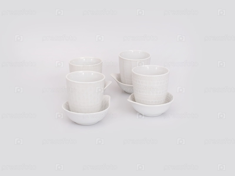 Набор чашек и тарелок для напитков, изолированных на белом фоне