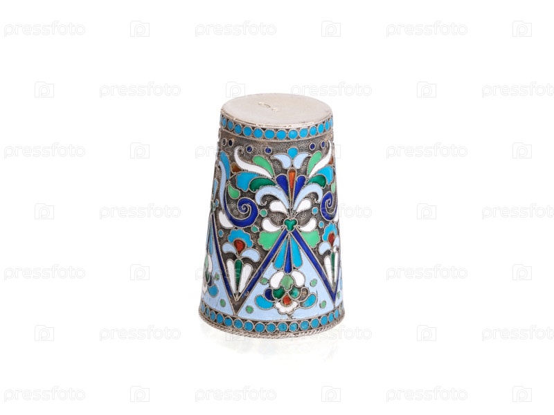 Античный серебряный бокал для вина с цветочным орнаментом клозона, изолированный на белом фоне