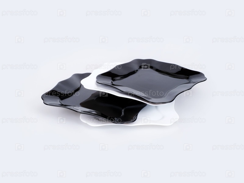 Черно-белые фарфоровые пластины, изолированные на белом фоне