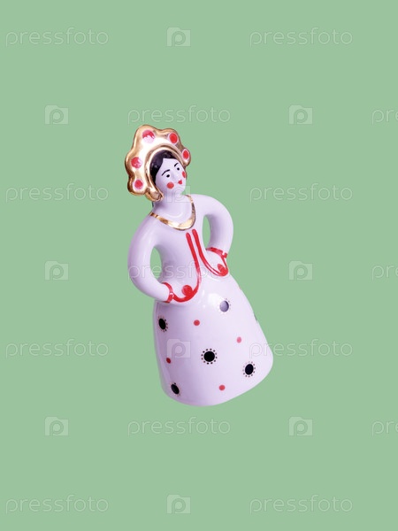 Порцелановая фигура русской девушки изолирована на зеленом фоне