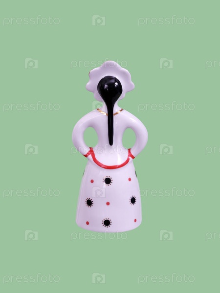 Порцелановая фигура русской девушки изолирована на зеленом фоне