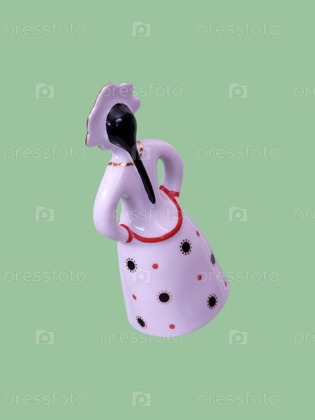 Порцелановая фигура русской девушки изолирована на зеленом фоне