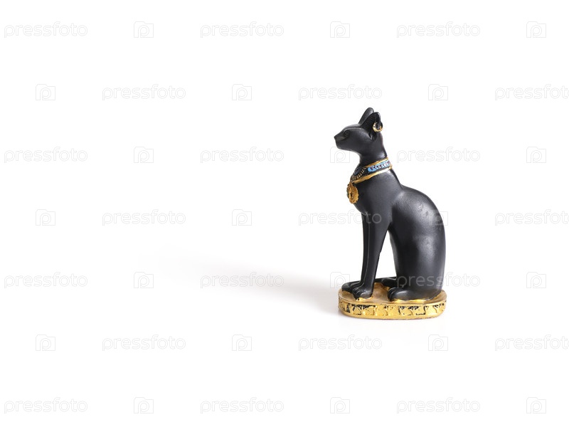 Сувенир из Египта (богиня Бастет в виде черного кота) выделен на белом фоне