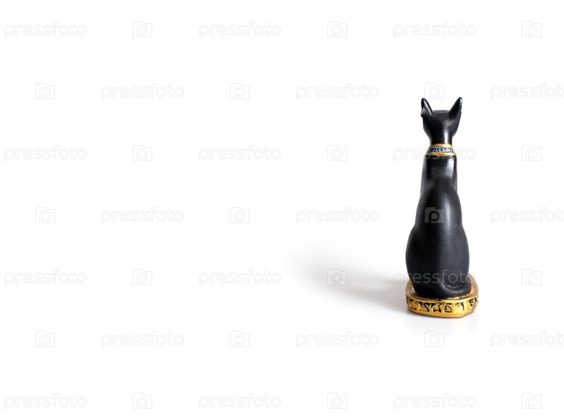 Сувенир из Египта (богиня Бастет в виде черного кота) выделен на белом фоне