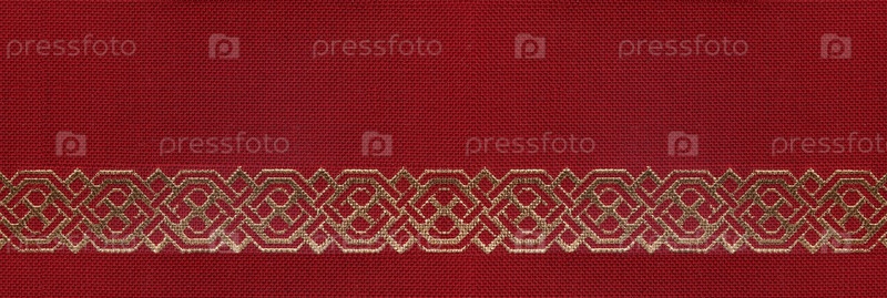 Изолированный красный текстильный фон с золотым орнаментом для создания макета