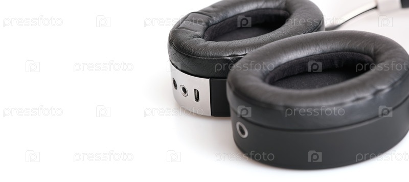 Черные беспроводные наушники изолированы на белом фоне