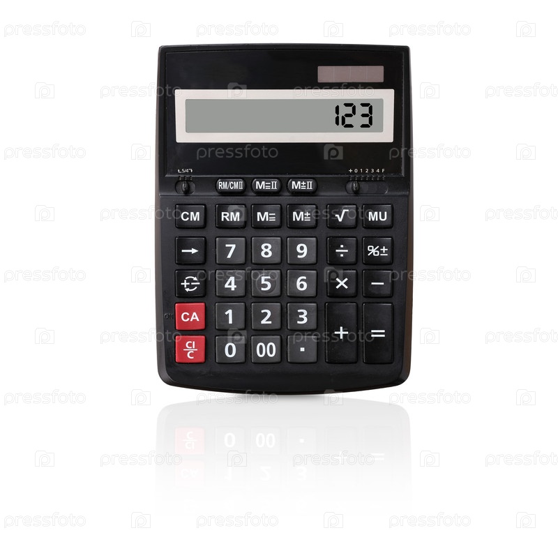 Черный калькулятор с черными числами, выделенными на белом фоне