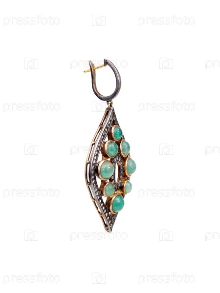 Золотая серьга с драгоценными камнями, изолированная на белом фоне