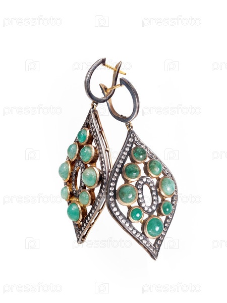 Золотая серьга с драгоценными камнями, изолированная на белом фоне
