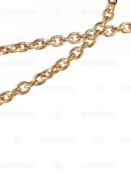 Закрывающая золотая ювелирная цепь изолирована на белом фоне, ошейник готов