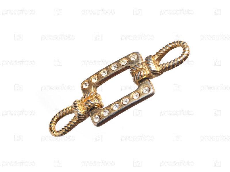 Золотой аксессуар для одежды, обуви и сумок изолирован на белом фоне