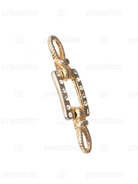 Золотой аксессуар для одежды, обуви и сумок изолирован на белом фоне