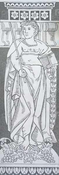 Ренессансная штукатурка женская фигура с персоналом классической архитектуры рисунок изолирован на белом фоне, чрезвычайно высокое разрешение. Буча, Свадебный дворец, фреска фасада