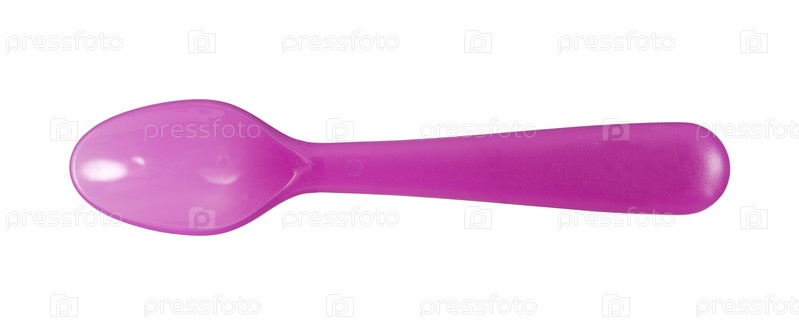 Фиолетовая пластиковая ложка для пикника изолирована на белом фоне