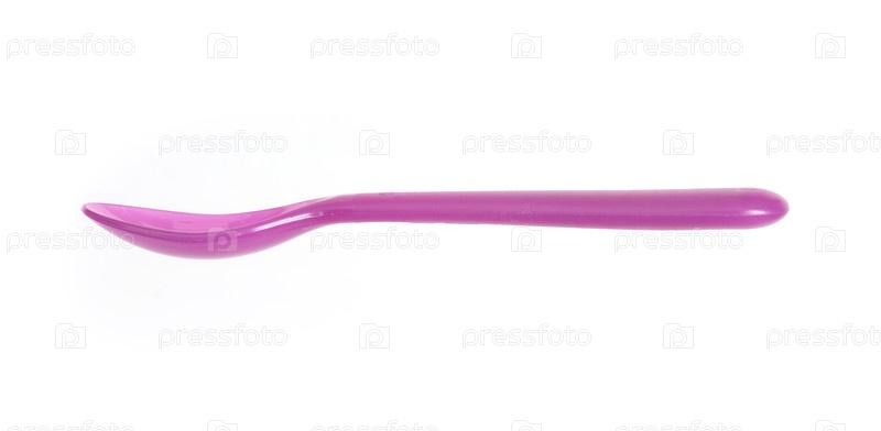 Фиолетовая пластиковая ложка для пикника изолирована на белом фоне