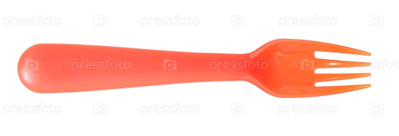 Красная пластиковая вилка для пикника изолирована на белом фоне