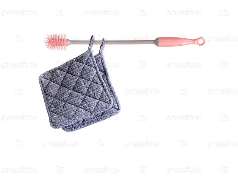 Кухонные текстильные горшки для горячей изоляции на белом фоне (композиция с помощью щетки)