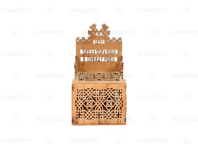 Древний резный деревянный соляной погреб изолирован на белом фоне по русской пословице