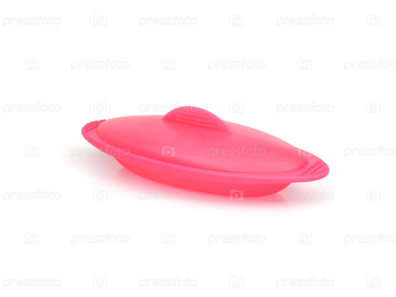 Розовая силиконовая сковородка с крышкой изолирована на белом фоне