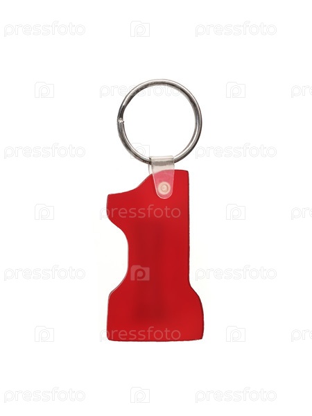 Красный подвесок 'Один' на черном шнуре изолирован против белого фона