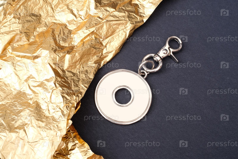 Круглая цепь ключей с карабином для сумки, изолированной на золотом фоне