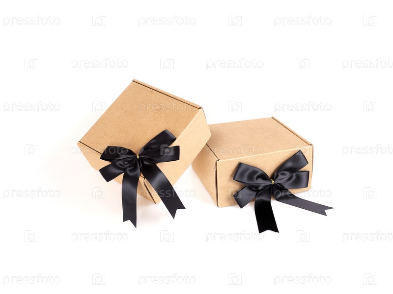 Одна коробка с черным луком и лентой, изолированная на белом фоне
