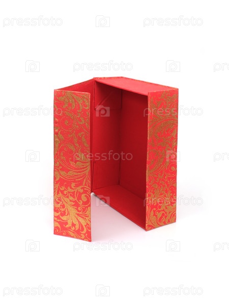 Элегантная красная подарочная коробка, покрытая шелковой тканью и изолированной на белом фоне