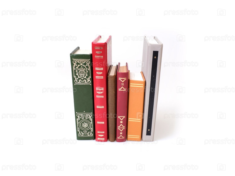 Куча книг в цветных обложках с белыми листами, изолированными на белом фоне