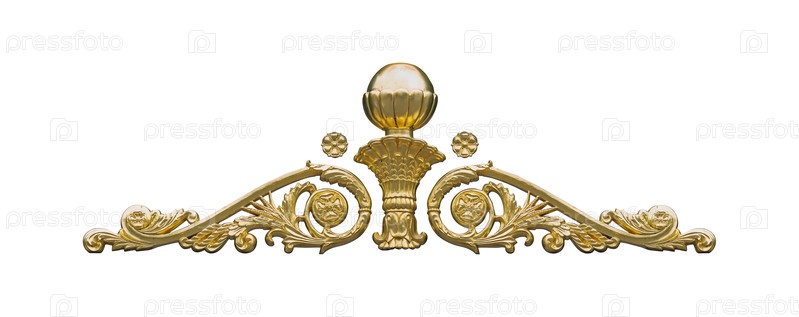 Золотой декоративный архитектурный элемент выделен на белом фоне