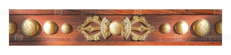 Деревянная плита с золотым буддийским орнаментом ваджры изолирована на белом фоне