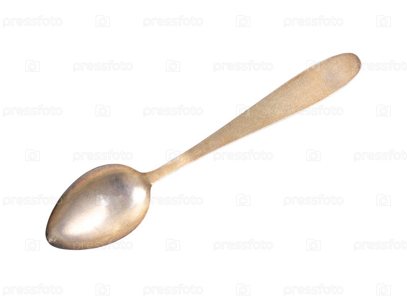Винтажная золотая и эмалированная чайная ложка выделена на белом фоне