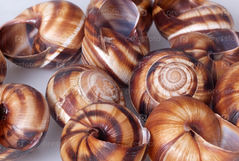 Куча дюжины виноградных улиток, изолированная на белом фоне