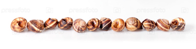 Линия из дюжины виноградных улиток, выделенных на белом фоне