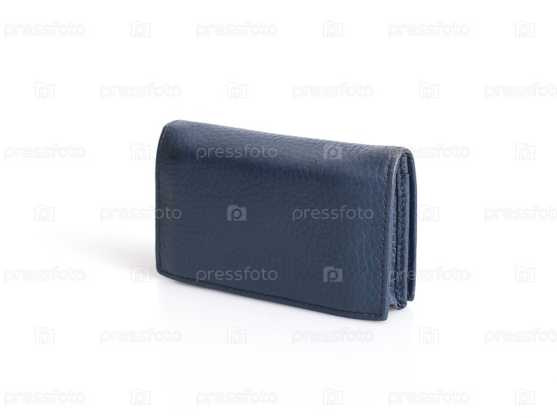 Владелец голубой кожаной визитной карточки изолирован на черном фоне