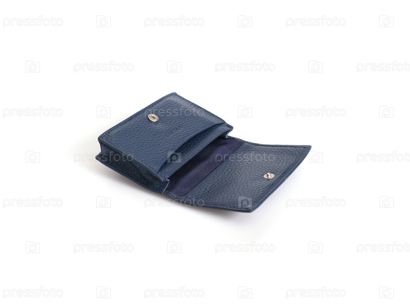 Владелец голубой кожаной визитной карточки изолирован на черном фоне