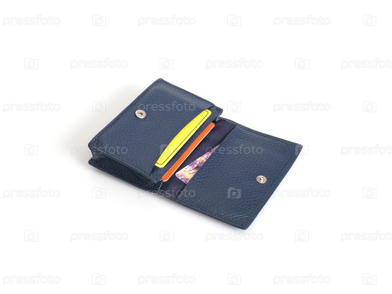 Владелец голубой кожаной визитной карточки изолирован на черном фоне