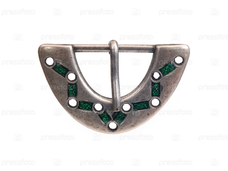 Винтажный полукруглый ременной зажим с зелеными кристаллами, выделенными на белом фоне, отрезка готова.Очень высокое разрешение