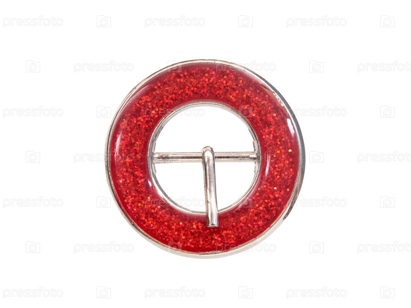 Круглое красно-серебряное декоративное застежка изолировано на белом фоне, резка готова. очень высокое разрешение