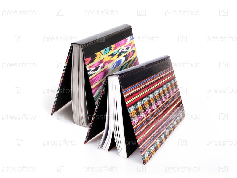 Книга в цветной обложке с белыми листами, изолированными на белом фоне