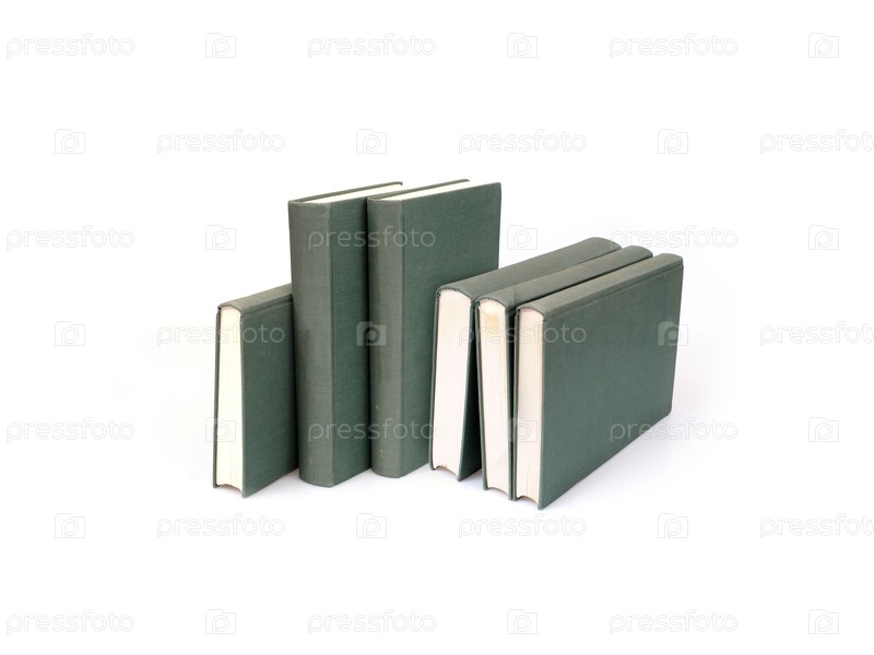 Куча зеленых книг, изолированных на белом фоне