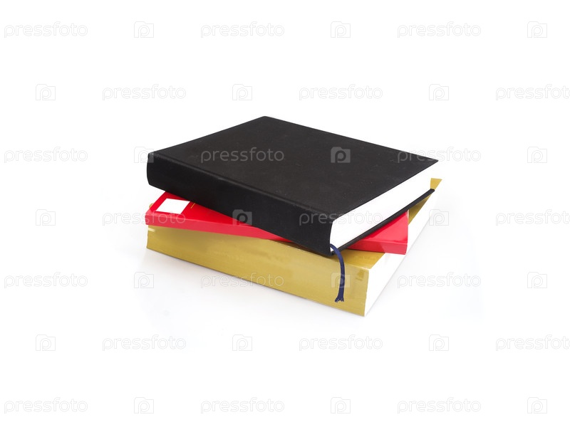 Куча книг в цветных обложках с белыми листами, изолированными на белом фоне