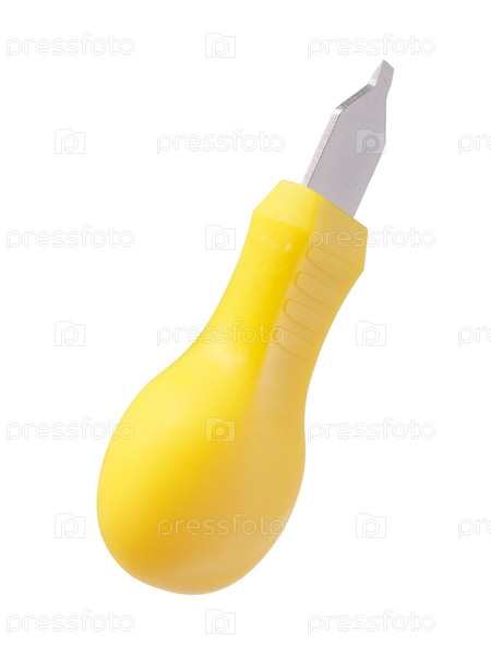Желтый обработанный инструмент для открытия коробки для часов, изолирован на белом фоне, вырезка готова