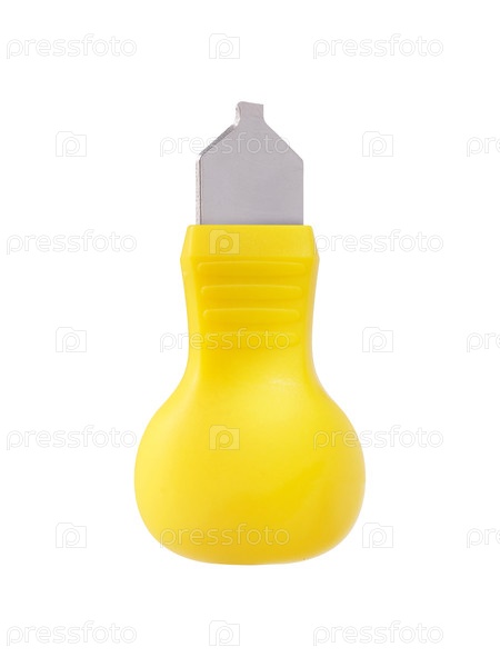 Желтый обработанный инструмент для открытия коробки для часов, изолирован на белом фоне, вырезка готова
