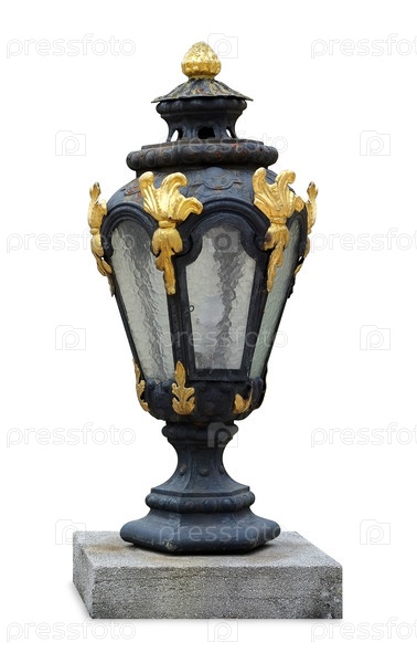Бронзовый (с золотом) уличный фонарь изолирован на белом фоне