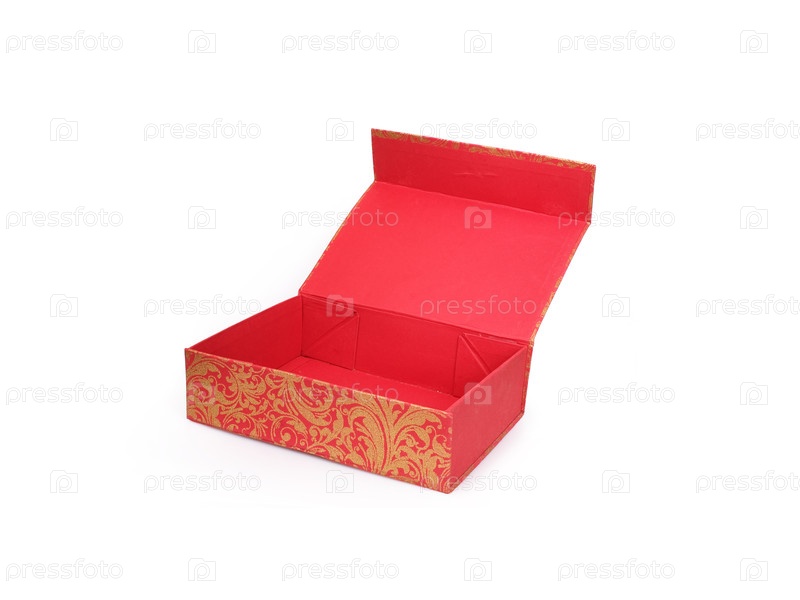 Элегантная красная подарочная коробка, покрытая шелковой тканью и изолированная на белом фоне