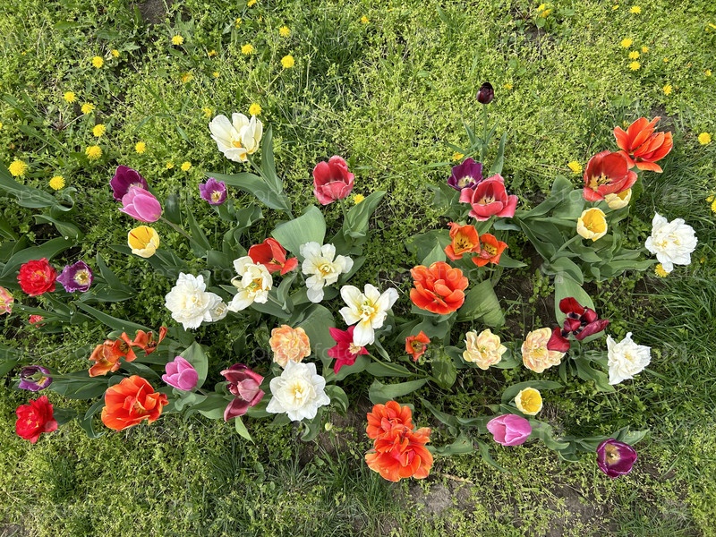 Сад с цветами - тюльпаны