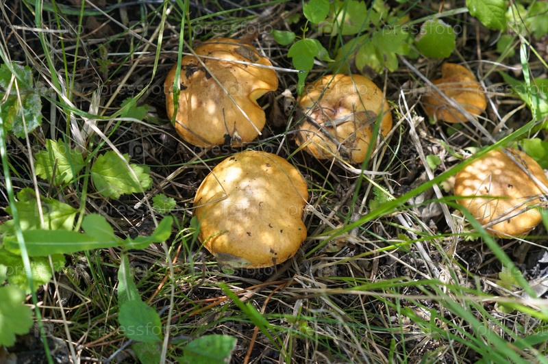 В лесу растут грибы оливкового масла (лат. Suillus luteus)