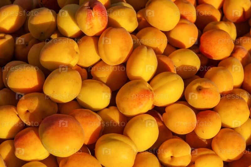 Съедобный фон спелых плодов абрикосов в лучах солнца