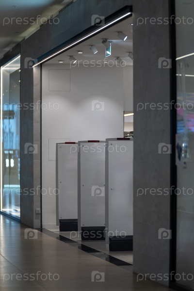 Радиочастотные защитные ворота со встроенным металлоискателем у входа в магазин одежды